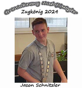 13.07.2024 | Am 13.07.2024 gegen 20:00Uhr war es wieder soweit. Wir, der Grenadierzug Nach(t)zügler & Frauen, gratulieren unserem neuen Zugkönig. < Jason Schnitzler > |